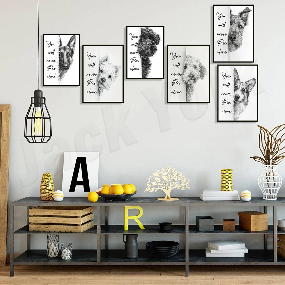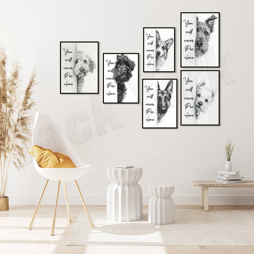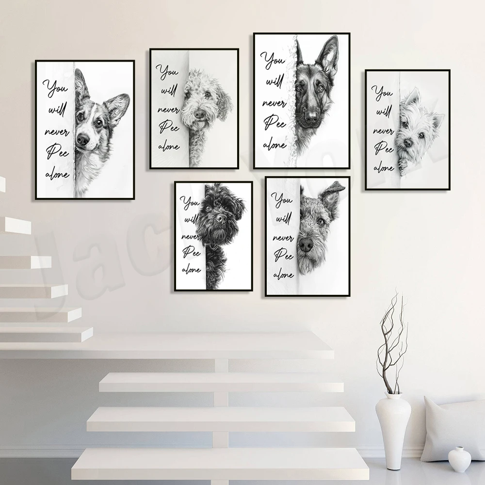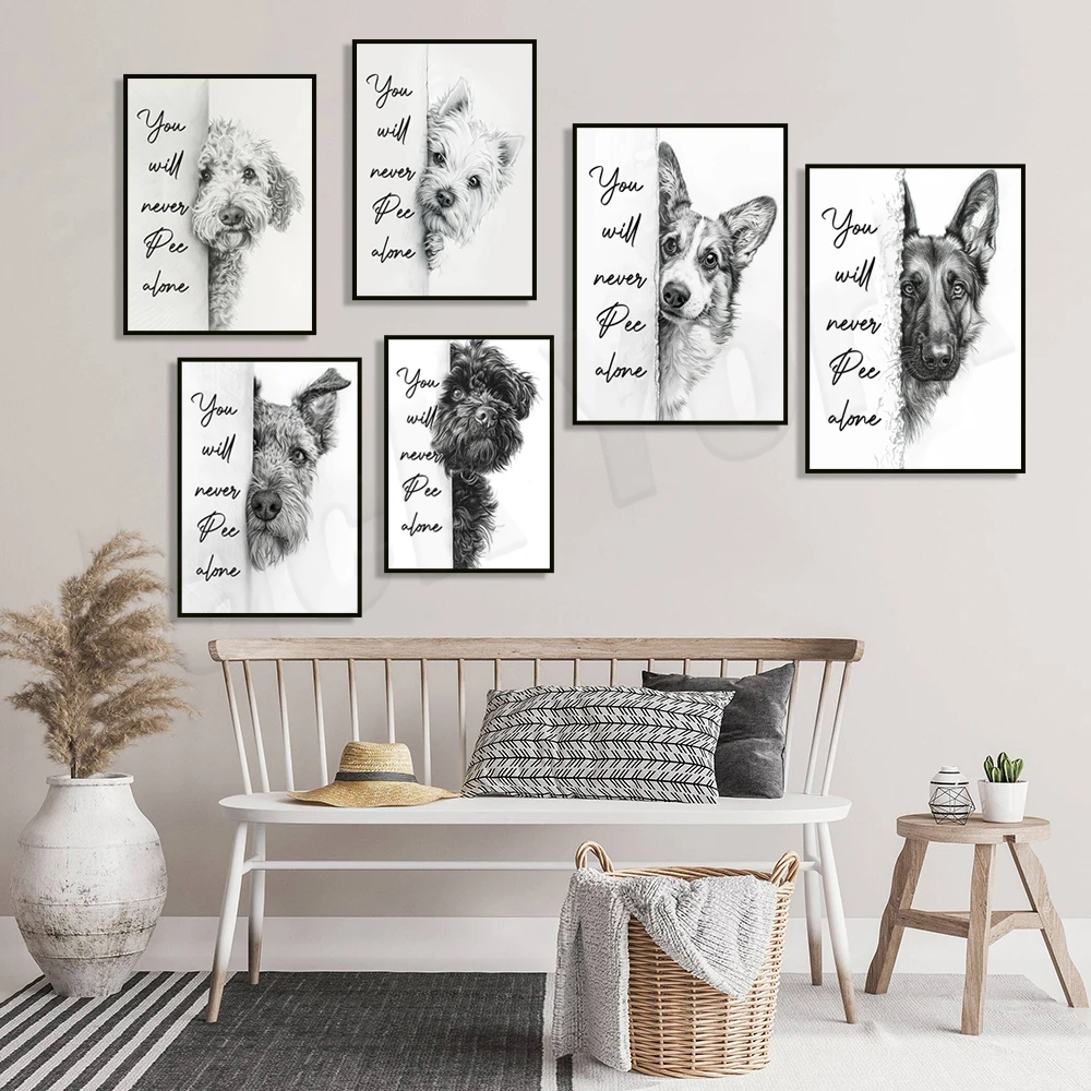 Funny Portuguese Dog You Never Pee Alone dog poster toilet decoration